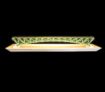 | The "Mark V.1" Modelviewer. Mk. V.1 Modelviewer (2006). Neon light illuminated, 230 V. Rails can carry current from external power supply via sub-miniature 2-pin connector. Baseboard made of maple wood, length 565 mm, width 265 mm, total height 145 mm. Length of track 615 mm, maximum load 10 kilograms.